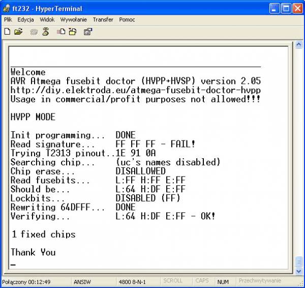 Выводы. В результате работы «Atmega fusebit doctor» мною были возращены к жизни несколько ATtiny2313, ATmega48, Atmega8535. «Atmega fusebit doctor» зарекомендовал себя с наилучшей стороны. И даже появились планы на нестандартное его использование. Давно руки чешутся заюзать ножку сброса ATtiny13 как еще один порт ввода/вывода, но всегда останавливало то, что микроконтроллер теряется для последующего использования. С «доктором» можно смело использовать ножку по своему усмотрению и при необходимости восстанавливать ее «заводское» назначение.