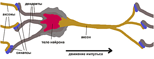двух типов - дендриты, по которым принимаются импульсы, и единственный